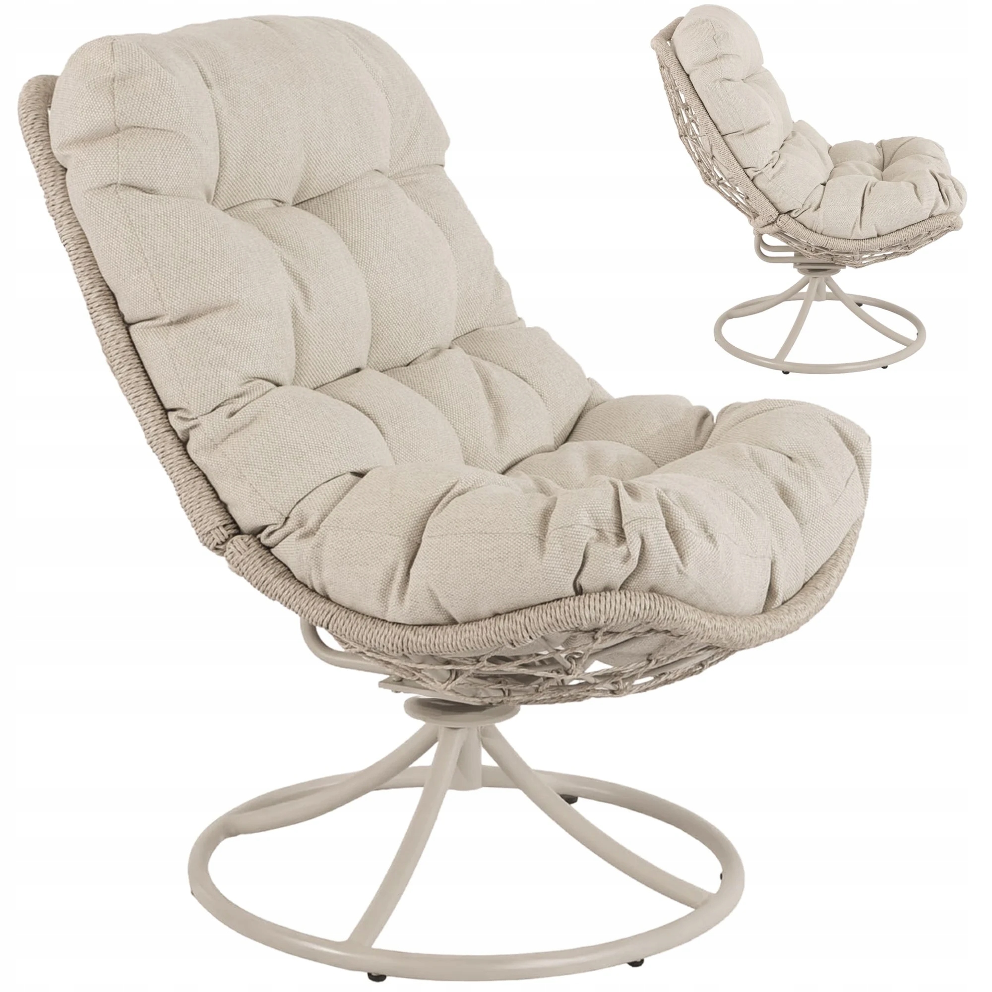 Fotel Ogrodowy Obrotowy Krzesło Ogrodowe do Domu Fotel Balkonowy Wolnostojący Melia beżowa