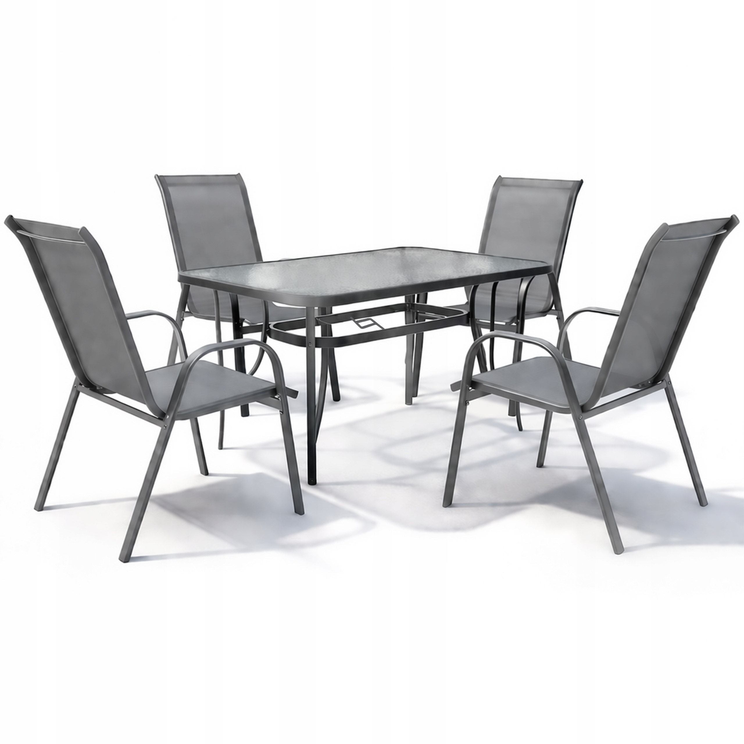ZESTAW MEBLI OGRODOWYCH BALKON TARAS STÓŁ 120×70 +4x KRZESŁA MINORKA SZARE